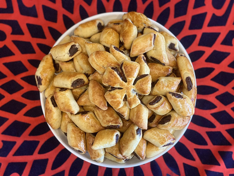 Here is my rendition of Eid cookies, from my Iraqi heritage. These date-filled cookies are called “klaicha.”