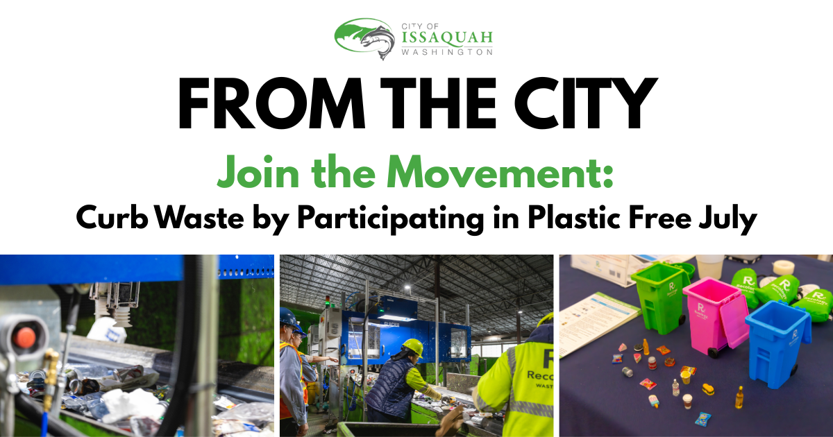 Sam Tarvin In City of Issaquah, Connections, Sustainability From the City: Curb Waste by Participating in Plastic Free July We’ve all seen the shocking images—floating garbage patches in the Pacific Ocean, marine animals entangled in plastic waste and birds…Read More