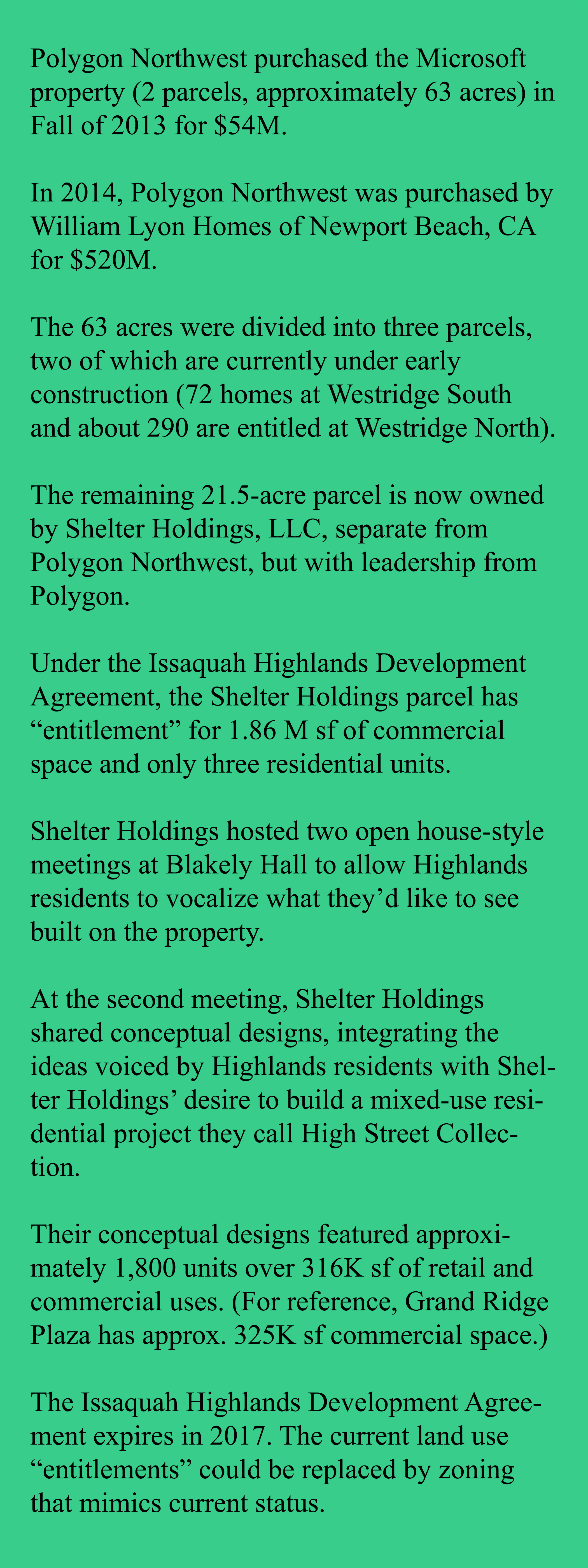 “Issaquah Highlands residents should stay engaged with the council and Shelter Holdings in order to influence the outcome.”