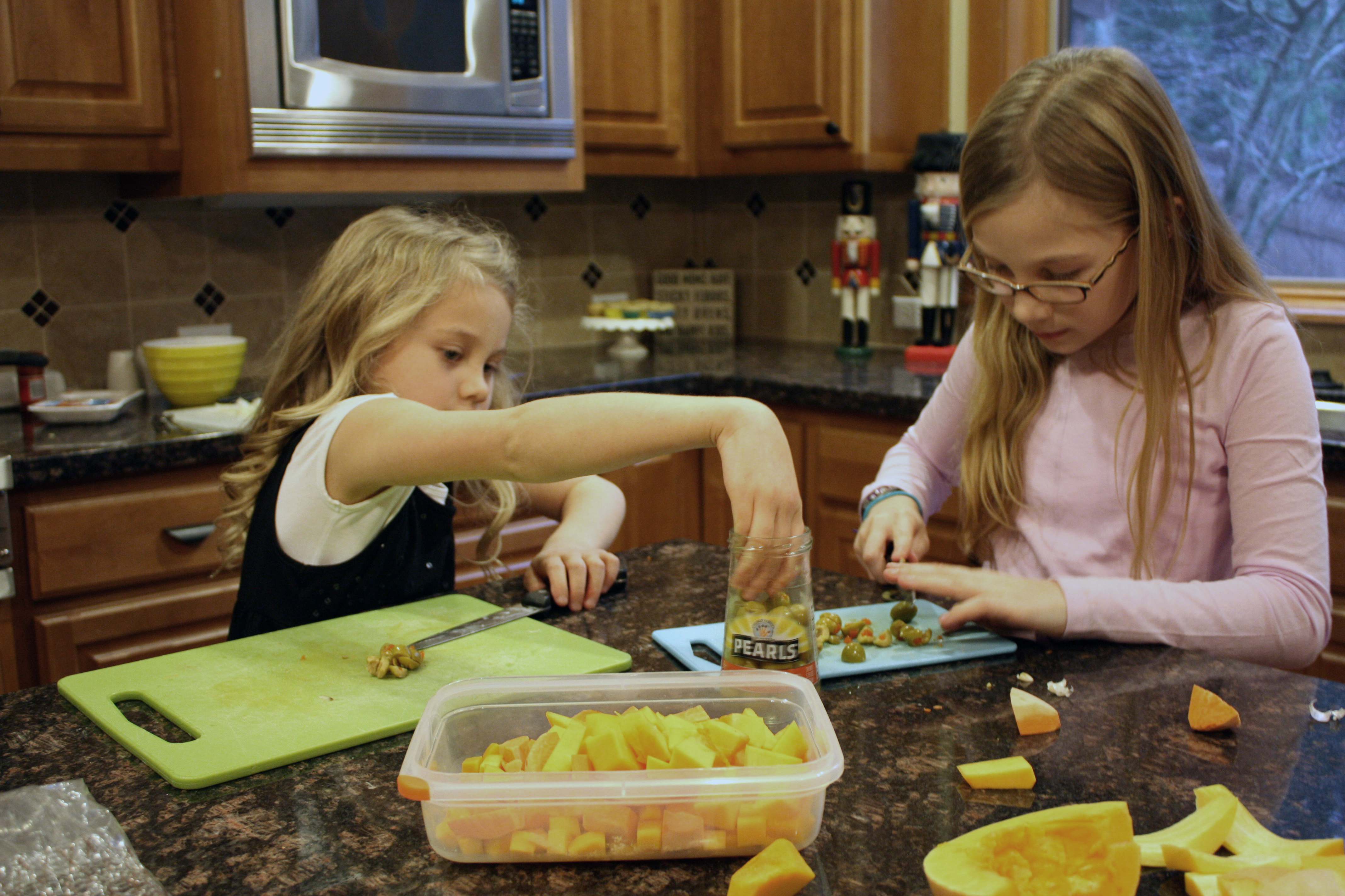 Aubrey, the Cook’s 11 year old daughter, loves her grandma’s Picarones. She learned to make them and served them at her school for a Thanksgiving celebration. Today she helps by mashing the cooked squash and yams.