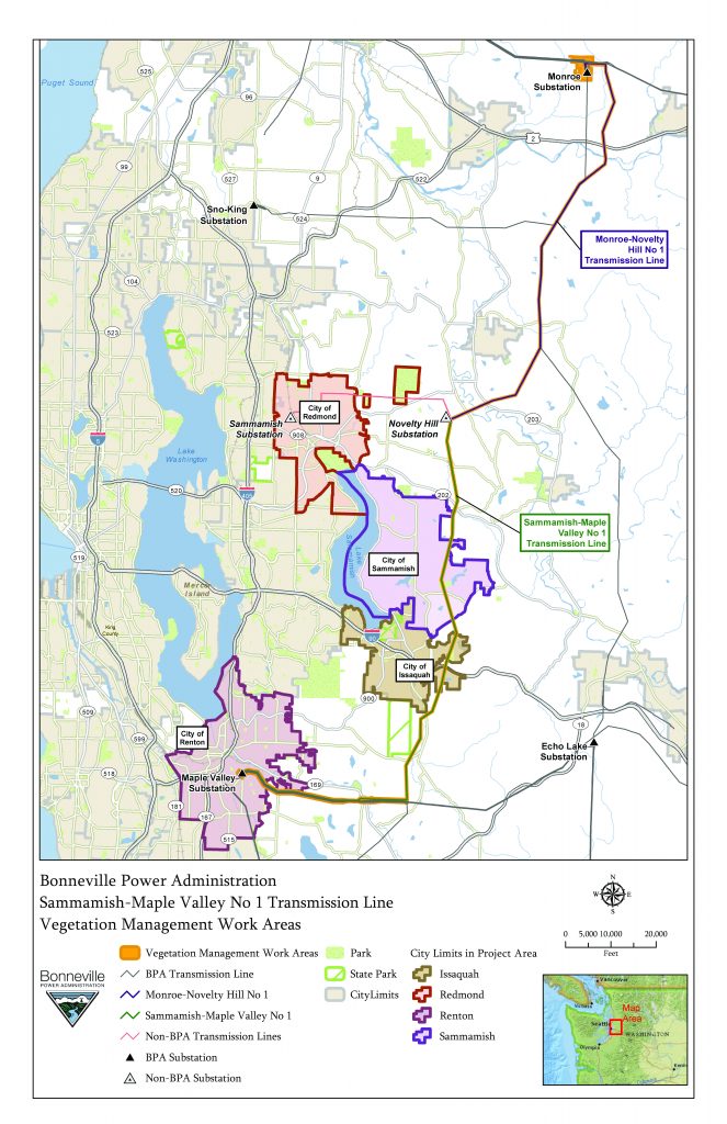 The Bonneville Power Administration (BPA) invites you to attend an informational briefing and open house for the 2018 End of Lease projects affecting the Sammamish-Maple Valley and Monroe-Novelty Hill transmission lines. The briefing portion will discuss general project plans and activities, as well as how BPA mitigates environmental impacts. Please stop by and share your thoughts, questions or concerns with the subject matter experts and other BPA representatives who will be available. More information about the line work can be found at www.bpa.gov/Projects/Transmission-Line-Reintegration