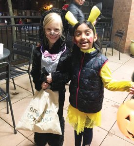 Chelsea’s daughter, Adara (left) with friend, Anika, trick-or-treating on Halloween in 2019.