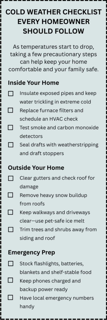 Your irrigation system also needs attention before the first hard freeze. Shut off and drain the system early to prevent pipe bursts, and use compressed air to blow out underground sprinkler lines. Protect backflow preventers and exposed valves by wrapping them in foam covers or insulating tape. On warmer winter days, take a few minutes to visually check the system for leaks or frost damage so issues don’t go unnoticed until spring.