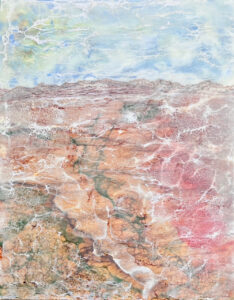 Artist Julie Marcelia depicts Pacific Northwest landscapes and seascapes in her metal leaf paintings. Her signature style layers texture, reflective metal leaf and paint to create dynamic artworks that evolve with changing light.