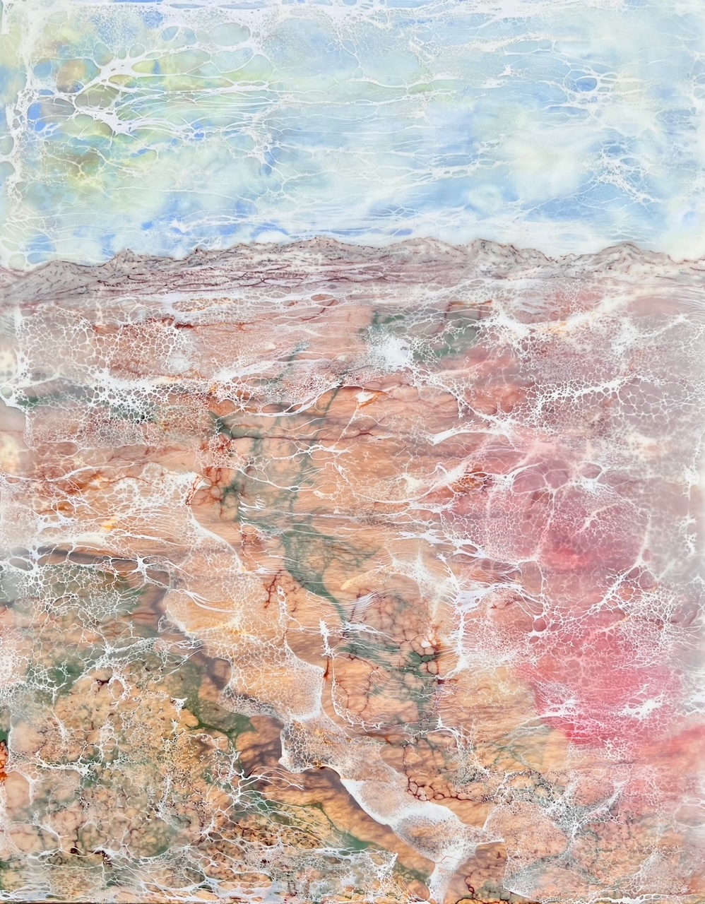 Marcelia’s fusion of materials and techniques result in works that are both exploratory and contemporary. By blending structured layers with spontaneous elements, she captures the delicate balance between control and unpredictability, mirroring the forces of nature that inspire her.